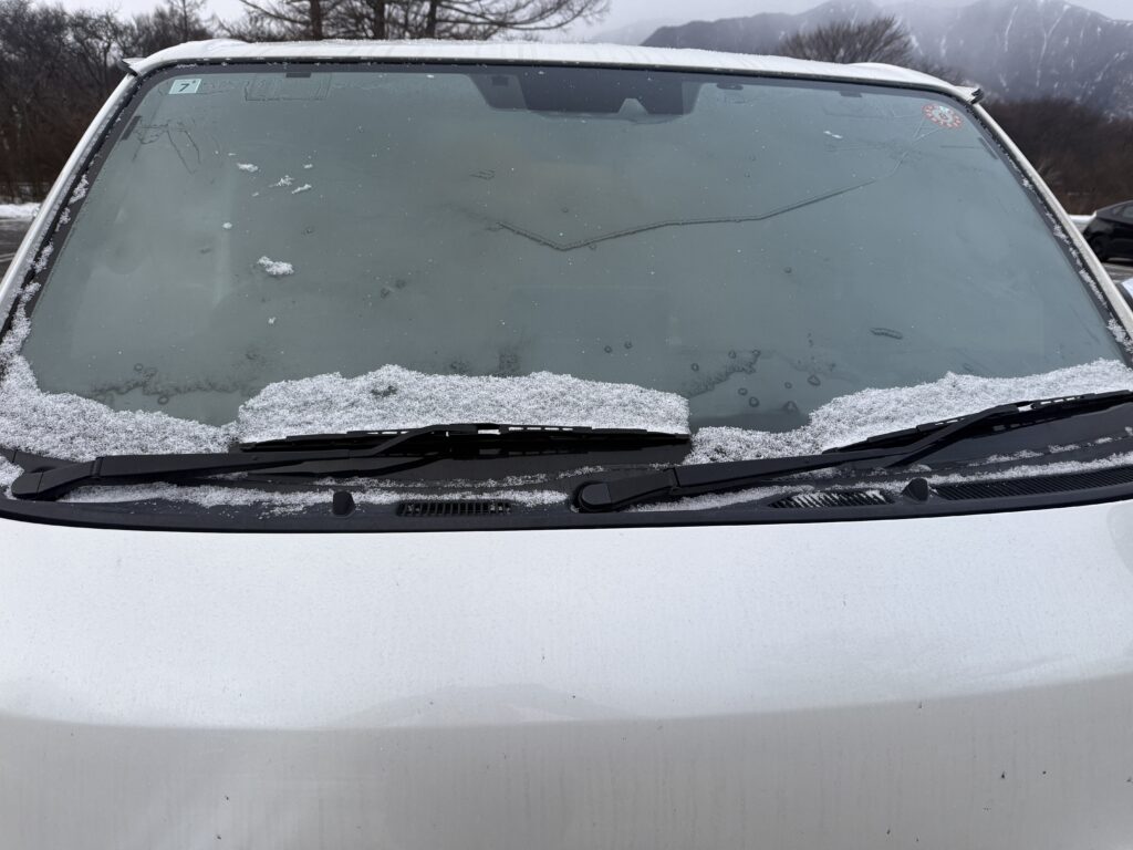 7:00 起床。フロントガラスには雪の華!